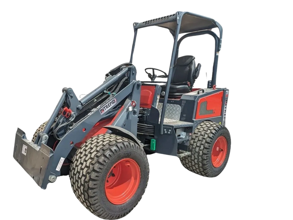 The Intrepid KM250 is the largest and most powerful compact wheel loader in the line-up, featuring a 48HP Yanmar engine and a service weight of 5400 lbs. Fitted with a hydraulically locking full-size skidsteer mount, this wheel-loader is the perfect tool-carrier to replace skidsteers on jobsites such as dairy farms, landscape supply stores, rental stores, and green industry projects. The KM250 features an operating capacity of 3560 lbs, allowing you to pick up a pallet of pavers or sod. The KM250 compact wheel loader is manufactured in Belgium by family-run Knikmops and comes in a telescopic version as well.